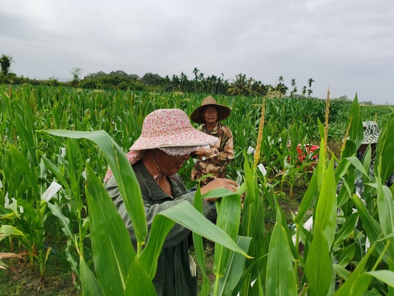 种子是农业的芯片。自1986年,济宁农科院为加快育种速度,提高育(繁)种速度与效率,促进产量提高和科技转化,玉米、大豆、花生和水稻等科研工作者们先后开展南繁加代育种工作,三十多年如一日,在每年11月初,像候鸟一样千里迢迢,跋山涉水,带着希望的种子,播撒在海南“南繁硅谷”这片神奇的土地上。南繁的科研工作者们,一边当农民,负责管理好田间浇水施肥除草打药等工作,一边当科研工作者,每天早晨7点,背上水壶,穿戴好草帽和专业工作服,便开始了一天单调重复却又富有挑战性的工作:为每株玉米完成一次套袋—取粉—自交—授粉—标记—挂牌等标准化科学化的流程操作,以确保每个雌穗授粉充足且均匀一致,不能受外源花粉的影响。在这里,每年要完成大概10万株自交杂交果穗,由于玉米开花散粉时间集中,花期持续时间仅有15-20天左右,育种者们经常需要加班加点完成每一份材料的繁殖任务。晚上回到驻地后,要及时记录和处理数据,梳理工作进度。