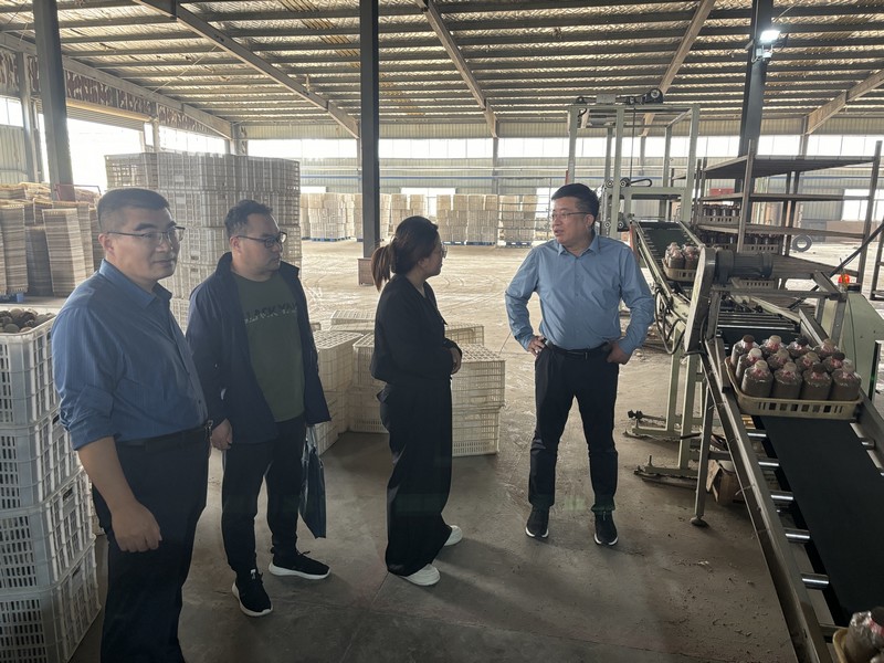 在山东世纪智慧农业科技有限公司,现场查看了秀珍菇的出菇情况以及菌渣制作有机肥的生产过程,并对秀珍菇的采摘时机和产品分级提出意见和建议,以确保品质和产量。另外,建议企业通过添加特定的微生物发酵剂,在适宜的温度和湿度条件下进行高温发酵处理,使菌渣转化为优质有机肥料,实现资源的循环利用。双方对建立试验示范基地,加快新品种、新技术的引进、推广达成合作意向。