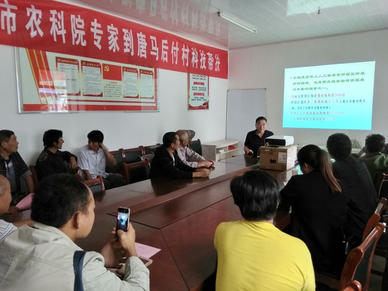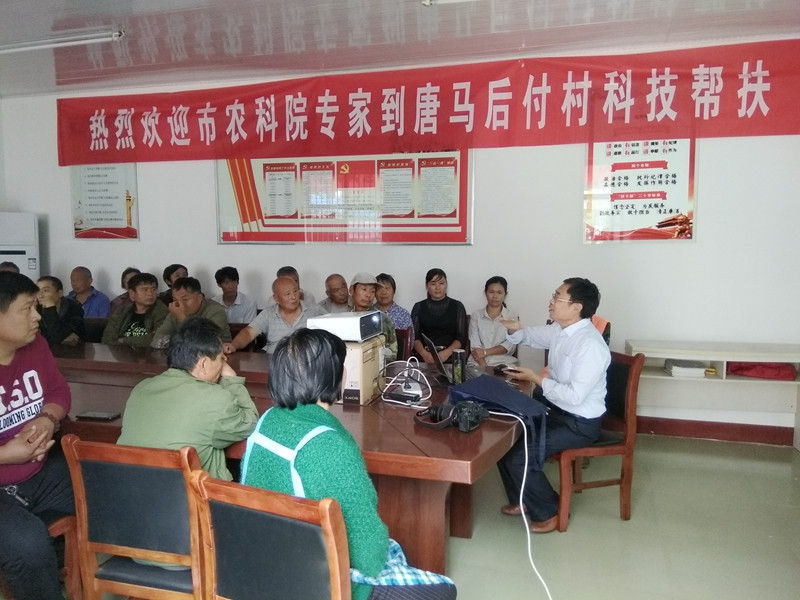 9月29日上午,受济宁市粮食局邀请,我院副院长、山东省蔬菜体系植保岗位专家马井玉研究员,蔬菜所长、国家特色蔬菜济宁试验站张金科研究员,生态所长、山东省食用菌体系济宁试验站站长刘前进高级农艺师,试验农场场长、山东省水稻体系济宁试验站站长黄信诚研究员等有关专家到市粮食局第一书记帮扶村----鱼台县唐马镇后付村开展科技培训活动。专家们系统讲解了番茄、水稻、食用菌等作物的高产高效轻简化种植技术和病虫害绿色防控技术,解答了群众提出的技术问题,并到蔬菜、食用菌种植大棚现场进行了技术指导。此次活动发放明白纸和科技书籍100多份,培训农民50多人次,收到了群众欢迎。