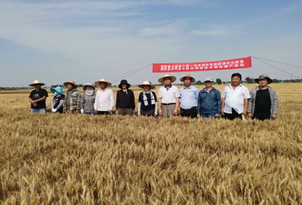 6月14日,受山东省农科院委托,小麦研究所邀请山东省农技推广总站、山东省种子管理总站、山东省植保总站等单位5位专家对我院小麦创新团队承担的由山东省农科院主持的国家粮丰二期项目“黄淮海东部小麦-玉米周年光温水肥资源优化配置均衡丰产增效关键技术研究与模式构建”课题1“小麦--玉米周年光温资源优化配置及群体调控技术研究”创建的位于济宁市兖州区小孟镇河庄村的15.7亩高产攻关田进行实打测产。实收面积3.48亩,实收小麦2704公斤,杂质率0.19%,平均籽粒水分含量9.55%,按照13%的标准水分含量折算,平均产量达到806.29公斤/亩,创造了我市小麦单产的最高纪录,同时也是连续两年在同一地块上实打超过800公斤/亩。高产攻关田选用的品种为山农28,播种期为2019年10月22日。主要集成应用了小麦适期晚播宽幅精量播种、播前播后机械镇压、肥水一体化、病虫害综合防治等技术,促使小麦个体发育匀衡健壮,群体分布合理,提高了小麦抗冻、抗旱、抗病、抗倒伏能力,提高了丰产稳产性,光温水肥利用效率提高15%以上。该项技术的应用为实现小麦王米周年双粒收,提高小麦玉米周年种植机械化水平、匀衡增产、高产高效,提供了的强有力的技术支撑。 近年来,我院小麦创新团队在做好育种工作的同时,加强了小麦栽培技术研究与技术推广工作,通过召开观摩会、技术讲座、微信平台、广播电视、下基层面对面技术指导等方式服务三农,为我市小麦优质高产高效生产做出了较大贡献。 (小麦所 供稿)