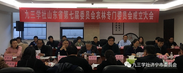 2019年12月4日,九三学社山东省委在济南召开九三学社山东省委农林专门委员会成立大会。会议宣读了《九三学社山东省委专门委员会工作通则》、《九三学社山东省委专门委员会工作细则》及《九三学社山东省委农林专委会名单(60人)》。会议指出,“三农”事业是我国发展中的重中之重,新的形势下,有新的变化、新的要求,九三省委农林专委会应运而生,作为社省委第一个专委会委员,要充分发挥其参政议政的作用。 随后,社省委农林专委会主任郝玉金主持了九三学社山东省委农林专委会第一次会议。我院马登超同志被任命为九三学社山东省农林专门委员会委员,做了个人发言,就如何把农林专委会的工作做好建言献策。各位委员一致表态,坚决拥护社省委成立农林专委会的决策,充分发挥各自的专业领域知识,做好课题调查研究,积极参与社会服务工作。 图片来源:九三学社济宁市委员会 (农产品研究所 供稿)